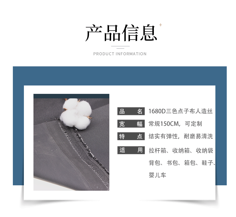 隆乾纺织防水防晒1680D三色点子布人造丝面料可拉杆箱旅游用品